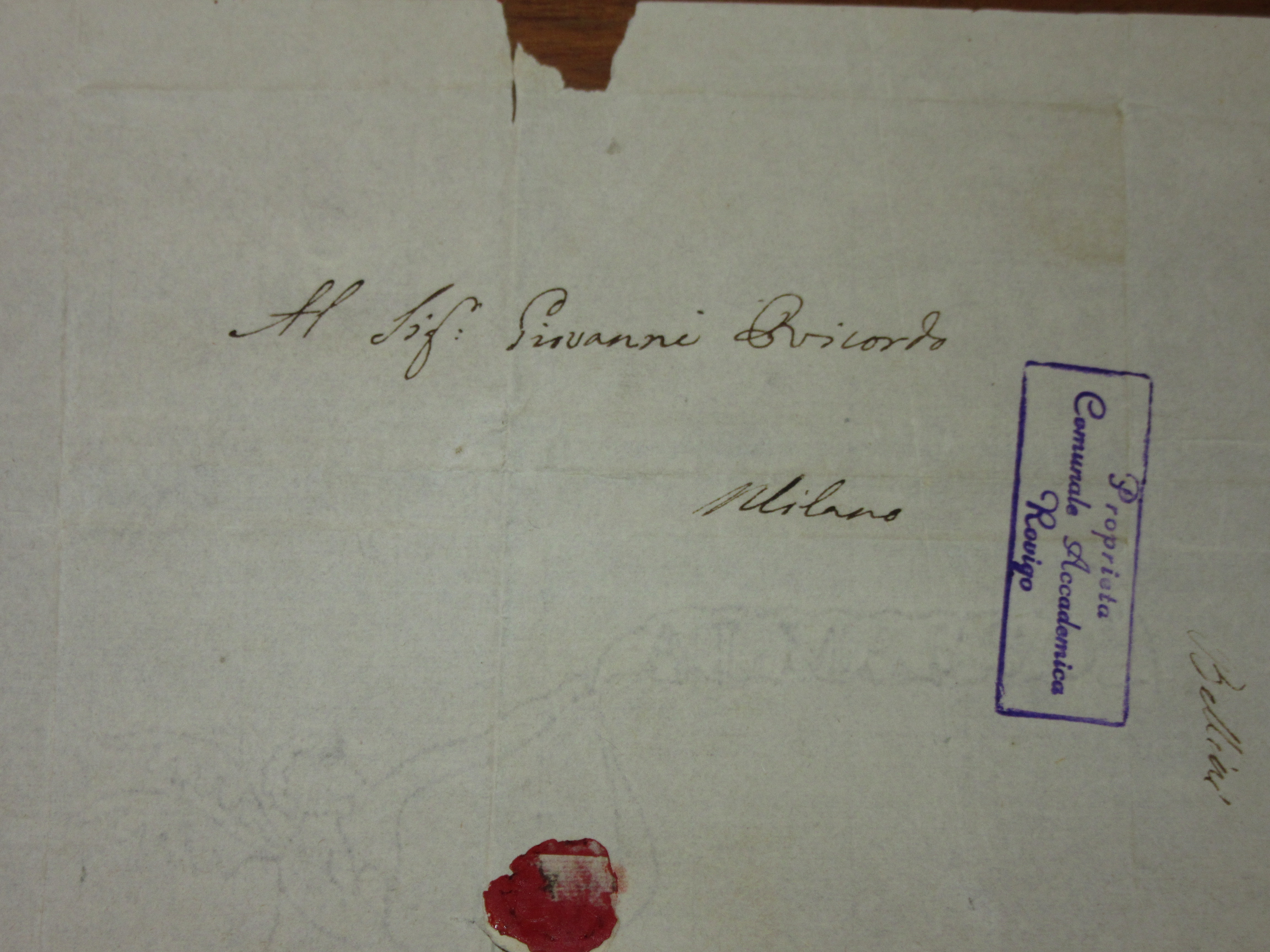 Al Sig:r Giovanni Ricordo