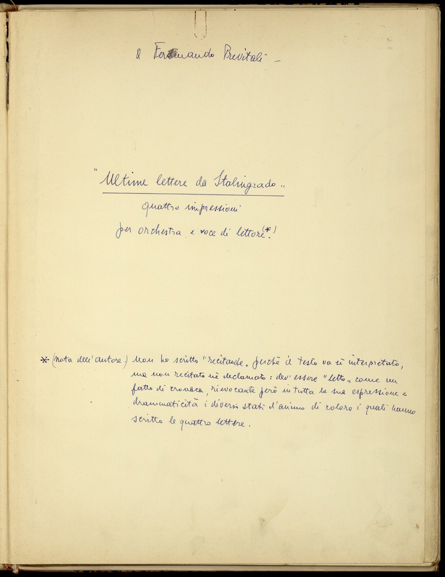 Ultime lettere da Stalingrado, 4 impressioni per orch. e voce di lettore