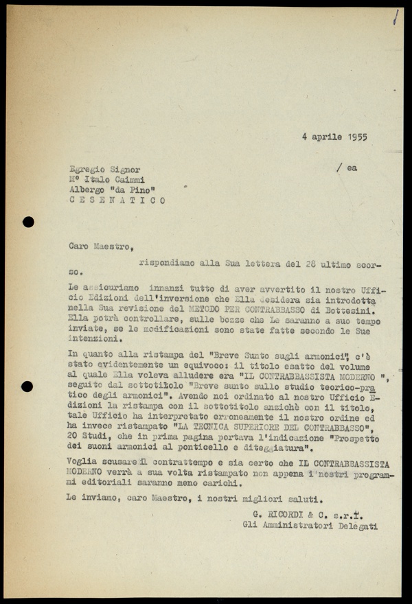 Le lettere di Casa Ricordi rappresentano un patrimonio di inestimabile valore non soltanto per la storia della musica e del teatro, ma anche delle relazioni fra arte e impresa economica. La capacità di tutelare il sottile equilibrio fra le ragioni artistiche e quelle commerciali è stato uno dei principali elementi del successo di Casa Ricordi. I suoi gestori dedicarono molto tempo ed energie alla relazione con gli artisti - fornitori ultimi del materiale capace di garantire la ricchezza e l’indipendenza della casa editrice - ma anche con i fruitori del loro lavoro: teatri, periodici musicali, musicisti e semplici appassionati. Vengono qui presentate tutte le lettere custodite dall’Archivio Storico Ricordi dall’inizio dell’attività fino al 1948, quando le dimissioni di Tito II segnano la fine della gerenza familiare. Le lettere successive sono consultabili su richiesta in archivio.