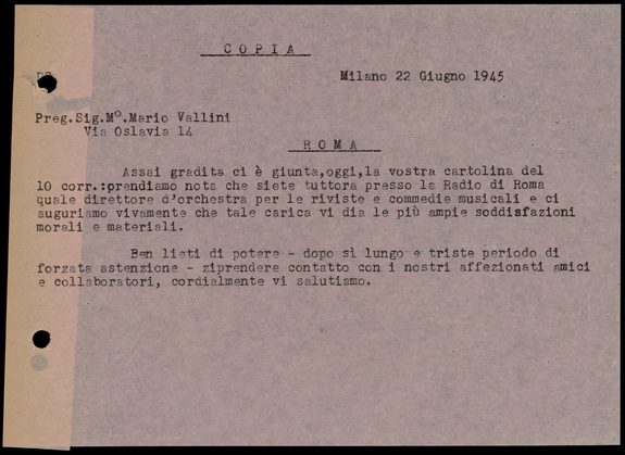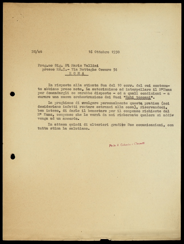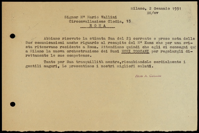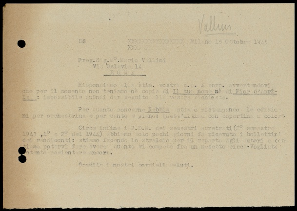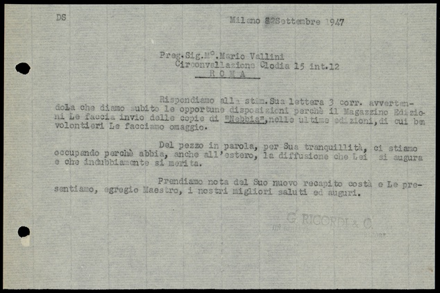 Le lettere di Casa Ricordi rappresentano un patrimonio di inestimabile valore non soltanto per la storia della musica e del teatro, ma anche delle relazioni fra arte e impresa economica. La capacità di tutelare il sottile equilibrio fra le ragioni artistiche e quelle commerciali è stato uno dei principali elementi del successo di Casa Ricordi. I suoi gestori dedicarono molto tempo ed energie alla relazione con gli artisti - fornitori ultimi del materiale capace di garantire la ricchezza e l’indipendenza della casa editrice - ma anche con i fruitori del loro lavoro: teatri, periodici musicali, musicisti e semplici appassionati. Vengono qui presentate tutte le lettere custodite dall’Archivio Storico Ricordi dall’inizio dell’attività fino al 1948, quando le dimissioni di Tito II segnano la fine della gerenza familiare. Le lettere successive sono consultabili su richiesta in archivio.
