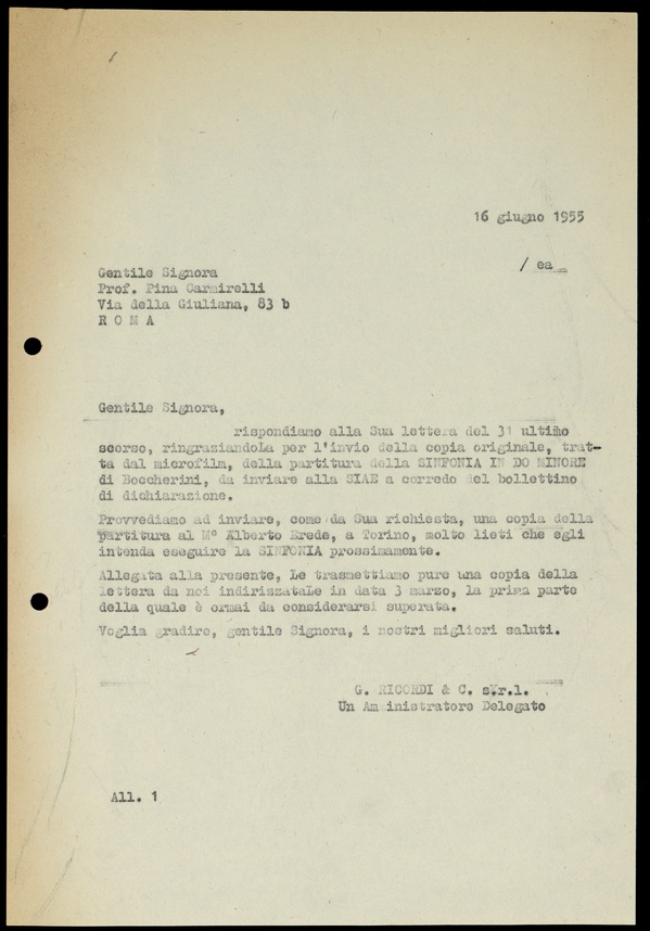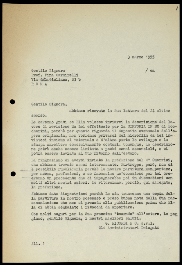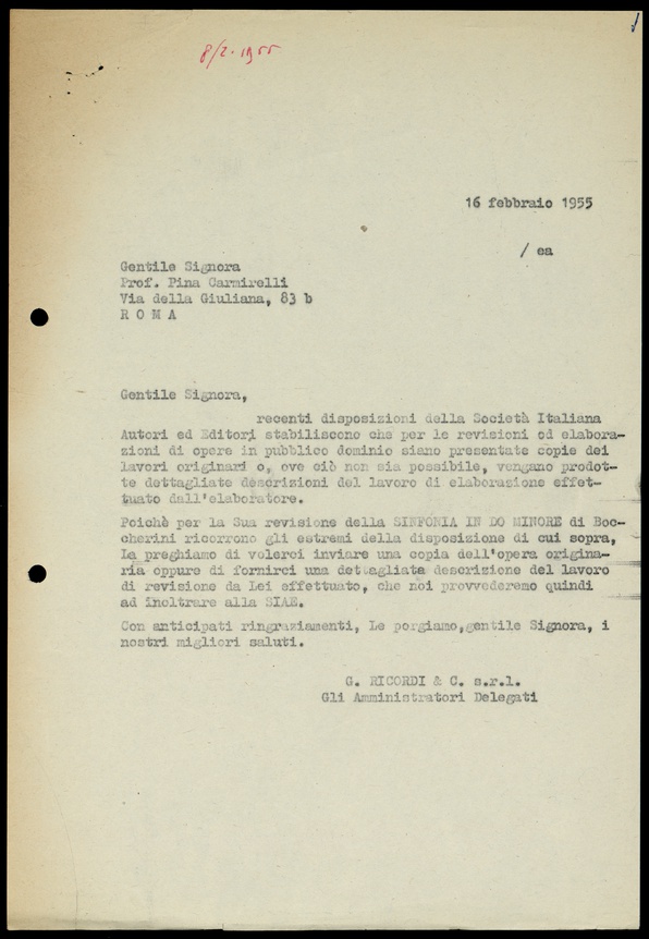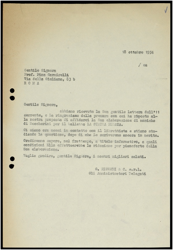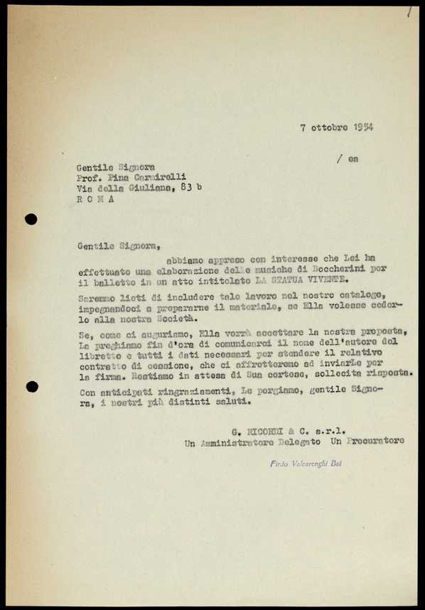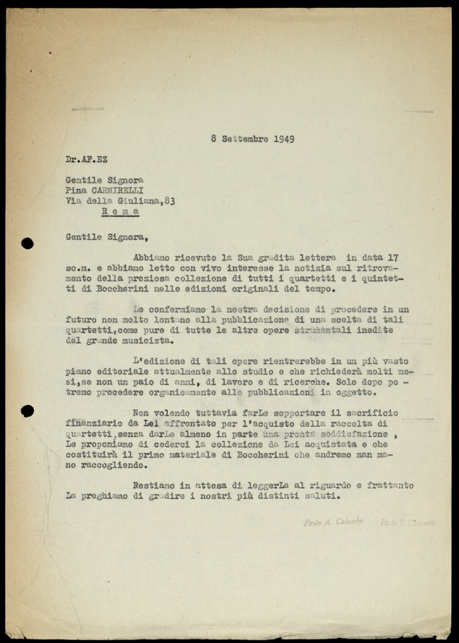 Le lettere di Casa Ricordi rappresentano un patrimonio di inestimabile valore non soltanto per la storia della musica e del teatro, ma anche delle relazioni fra arte e impresa economica. La capacità di tutelare il sottile equilibrio fra le ragioni artistiche e quelle commerciali è stato uno dei principali elementi del successo di Casa Ricordi. I suoi gestori dedicarono molto tempo ed energie alla relazione con gli artisti - fornitori ultimi del materiale capace di garantire la ricchezza e l’indipendenza della casa editrice - ma anche con i fruitori del loro lavoro: teatri, periodici musicali, musicisti e semplici appassionati. Vengono qui presentate tutte le lettere custodite dall’Archivio Storico Ricordi dall’inizio dell’attività fino al 1948, quando le dimissioni di Tito II segnano la fine della gerenza familiare. Le lettere successive sono consultabili su richiesta in archivio.