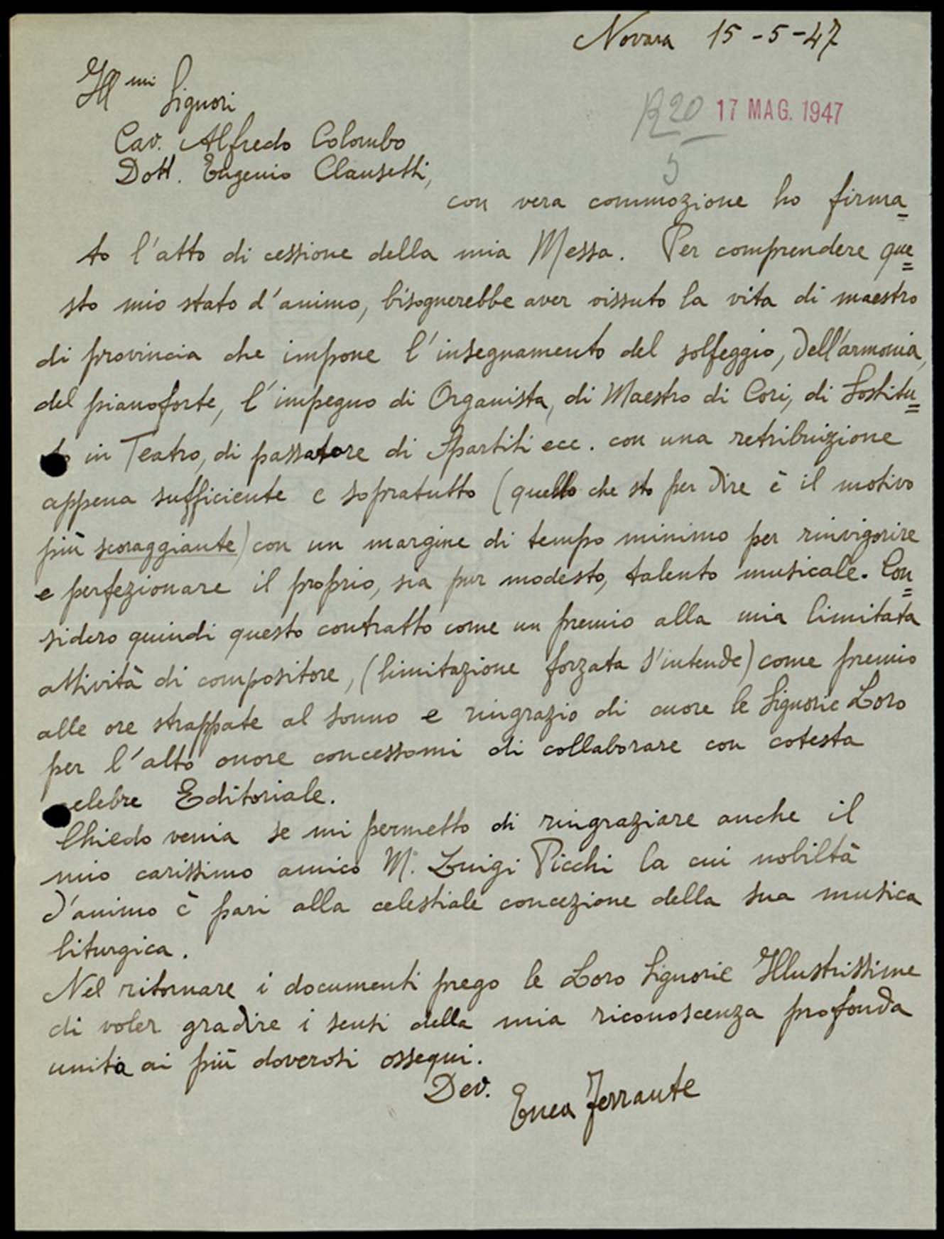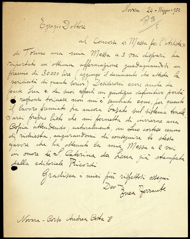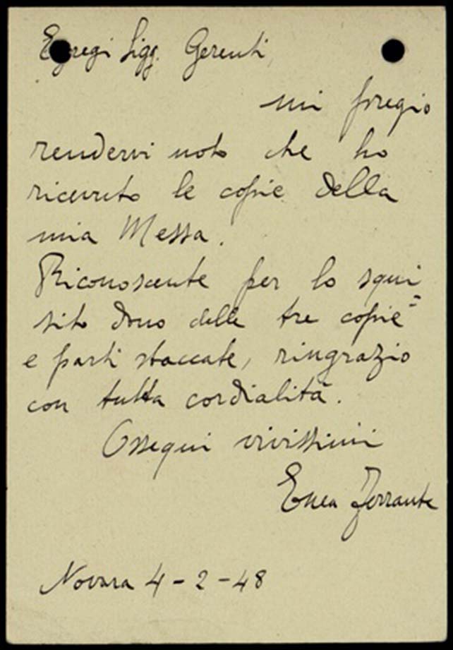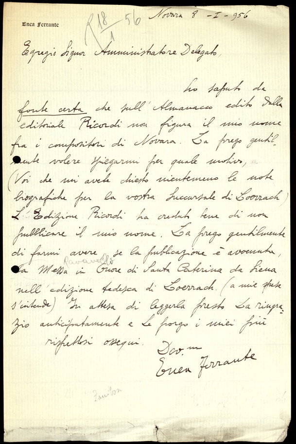 Le lettere di Casa Ricordi rappresentano un patrimonio di inestimabile valore non soltanto per la storia della musica e del teatro, ma anche delle relazioni fra arte e impresa economica. La capacità di tutelare il sottile equilibrio fra le ragioni artistiche e quelle commerciali è stato uno dei principali elementi del successo di Casa Ricordi. I suoi gestori dedicarono molto tempo ed energie alla relazione con gli artisti - fornitori ultimi del materiale capace di garantire la ricchezza e l’indipendenza della casa editrice - ma anche con i fruitori del loro lavoro: teatri, periodici musicali, musicisti e semplici appassionati. Vengono qui presentate tutte le lettere custodite dall’Archivio Storico Ricordi dall’inizio dell’attività fino al 1948, quando le dimissioni di Tito II segnano la fine della gerenza familiare. Le lettere successive sono consultabili su richiesta in archivio.
