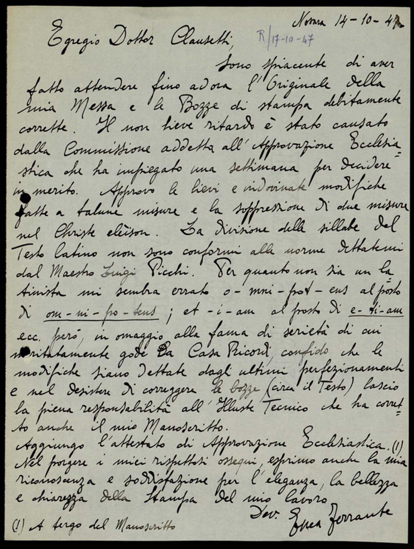 | Letter | Descrizione | Segnatura | Data |