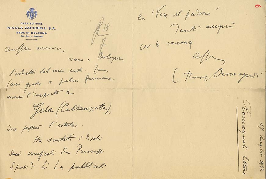 Le lettere di Casa Ricordi rappresentano un patrimonio di inestimabile valore non soltanto per la storia della musica e del teatro, ma anche delle relazioni fra arte e impresa economica. La capacità di tutelare il sottile equilibrio fra le ragioni artistiche e quelle commerciali è stato uno dei principali elementi del successo di Casa Ricordi. I suoi gestori dedicarono molto tempo ed energie alla relazione con gli artisti - fornitori ultimi del materiale capace di garantire la ricchezza e l’indipendenza della casa editrice - ma anche con i fruitori del loro lavoro: teatri, periodici musicali, musicisti e semplici appassionati. Vengono qui presentate tutte le lettere custodite dall’Archivio Storico Ricordi dall’inizio dell’attività fino al 1948, quando le dimissioni di Tito II segnano la fine della gerenza familiare. Le lettere successive sono consultabili su richiesta in archivio.