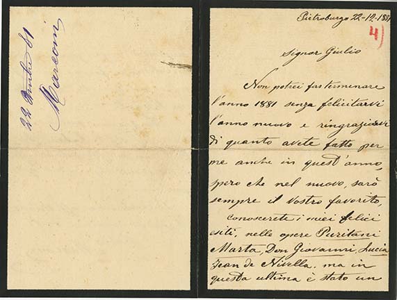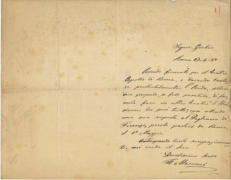 Le lettere di Casa Ricordi rappresentano un patrimonio di inestimabile valore non soltanto per la storia della musica e del teatro, ma anche delle relazioni fra arte e impresa economica. La capacità di tutelare il sottile equilibrio fra le ragioni artistiche e quelle commerciali è stato uno dei principali elementi del successo di Casa Ricordi. I suoi gestori dedicarono molto tempo ed energie alla relazione con gli artisti - fornitori ultimi del materiale capace di garantire la ricchezza e l’indipendenza della casa editrice - ma anche con i fruitori del loro lavoro: teatri, periodici musicali, musicisti e semplici appassionati. Vengono qui presentate tutte le lettere custodite dall’Archivio Storico Ricordi dall’inizio dell’attività fino al 1948, quando le dimissioni di Tito II segnano la fine della gerenza familiare. Le lettere successive sono consultabili su richiesta in archivio.