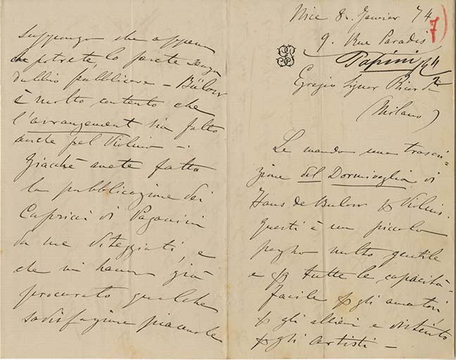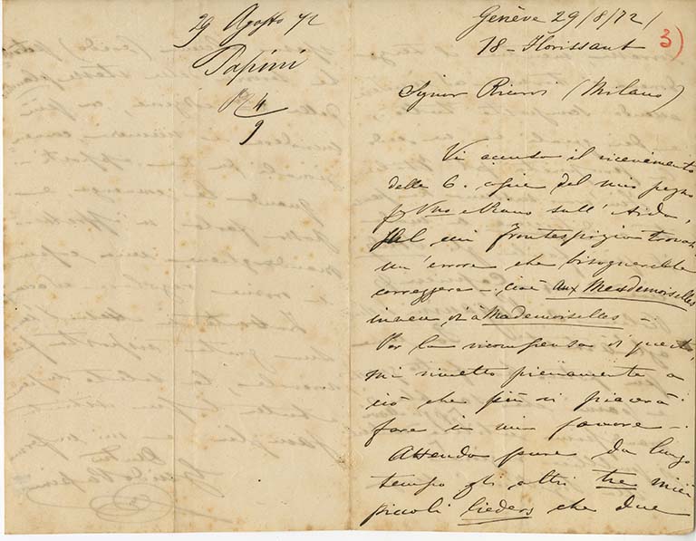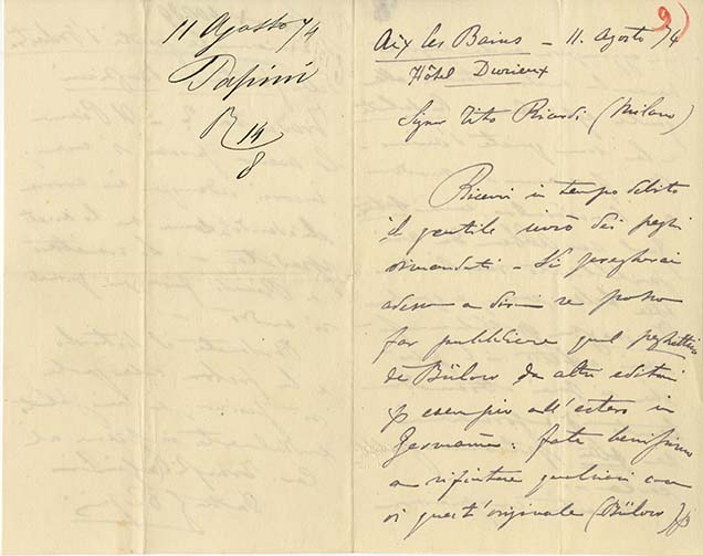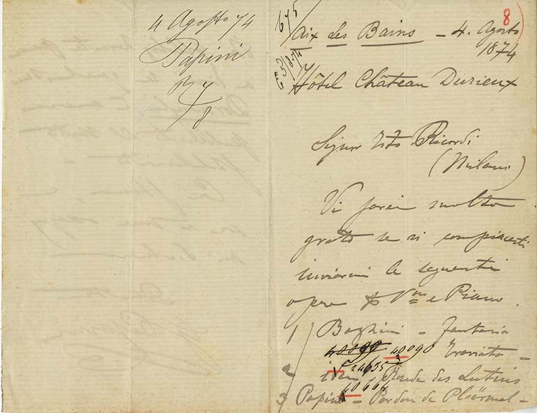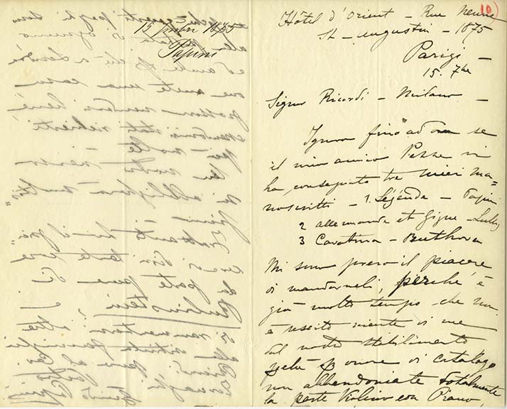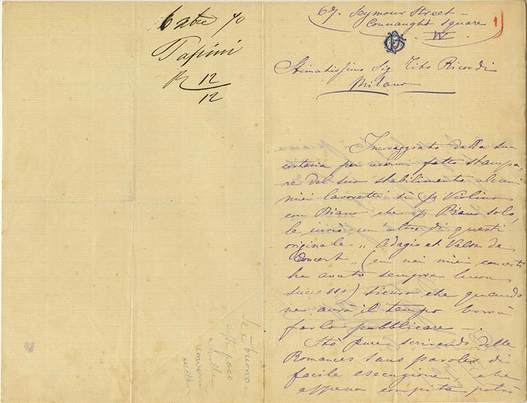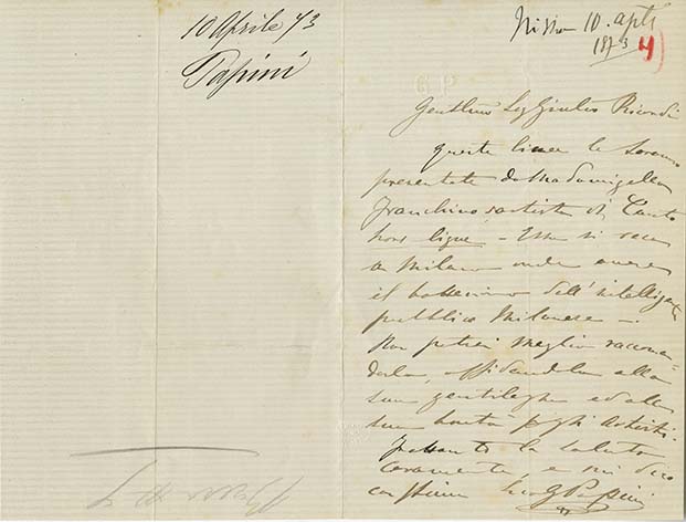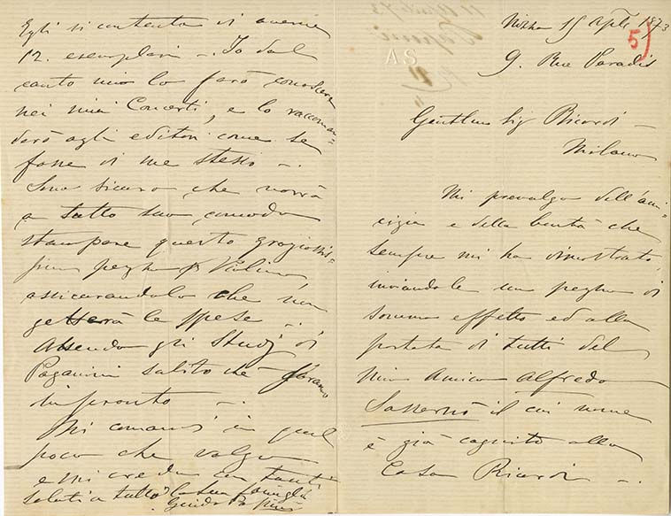 Le lettere di Casa Ricordi rappresentano un patrimonio di inestimabile valore non soltanto per la storia della musica e del teatro, ma anche delle relazioni fra arte e impresa economica. La capacità di tutelare il sottile equilibrio fra le ragioni artistiche e quelle commerciali è stato uno dei principali elementi del successo di Casa Ricordi. I suoi gestori dedicarono molto tempo ed energie alla relazione con gli artisti - fornitori ultimi del materiale capace di garantire la ricchezza e l’indipendenza della casa editrice - ma anche con i fruitori del loro lavoro: teatri, periodici musicali, musicisti e semplici appassionati. Vengono qui presentate tutte le lettere custodite dall’Archivio Storico Ricordi dall’inizio dell’attività fino al 1948, quando le dimissioni di Tito II segnano la fine della gerenza familiare. Le lettere successive sono consultabili su richiesta in archivio.