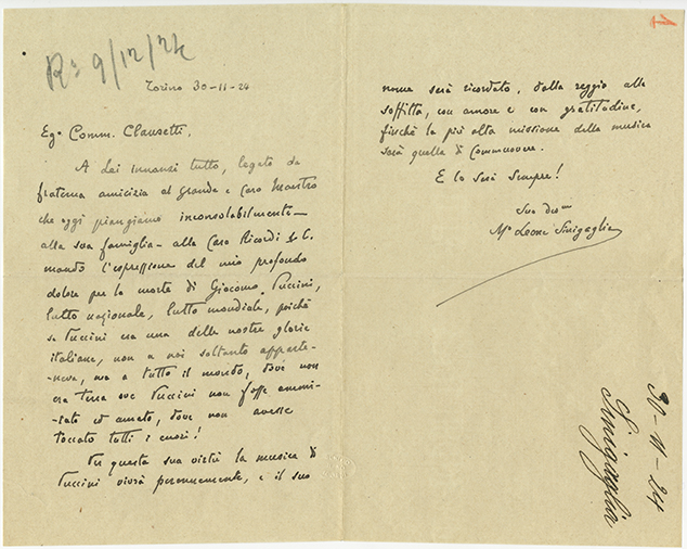 Le lettere di Casa Ricordi rappresentano un patrimonio di inestimabile valore non soltanto per la storia della musica e del teatro, ma anche delle relazioni fra arte e impresa economica. La capacità di tutelare il sottile equilibrio fra le ragioni artistiche e quelle commerciali è stato uno dei principali elementi del successo di Casa Ricordi. I suoi gestori dedicarono molto tempo ed energie alla relazione con gli artisti - fornitori ultimi del materiale capace di garantire la ricchezza e l’indipendenza della casa editrice - ma anche con i fruitori del loro lavoro: teatri, periodici musicali, musicisti e semplici appassionati. Vengono qui presentate tutte le lettere custodite dall’Archivio Storico Ricordi dall’inizio dell’attività fino al 1948, quando le dimissioni di Tito II segnano la fine della gerenza familiare. Le lettere successive sono consultabili su richiesta in archivio.