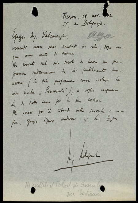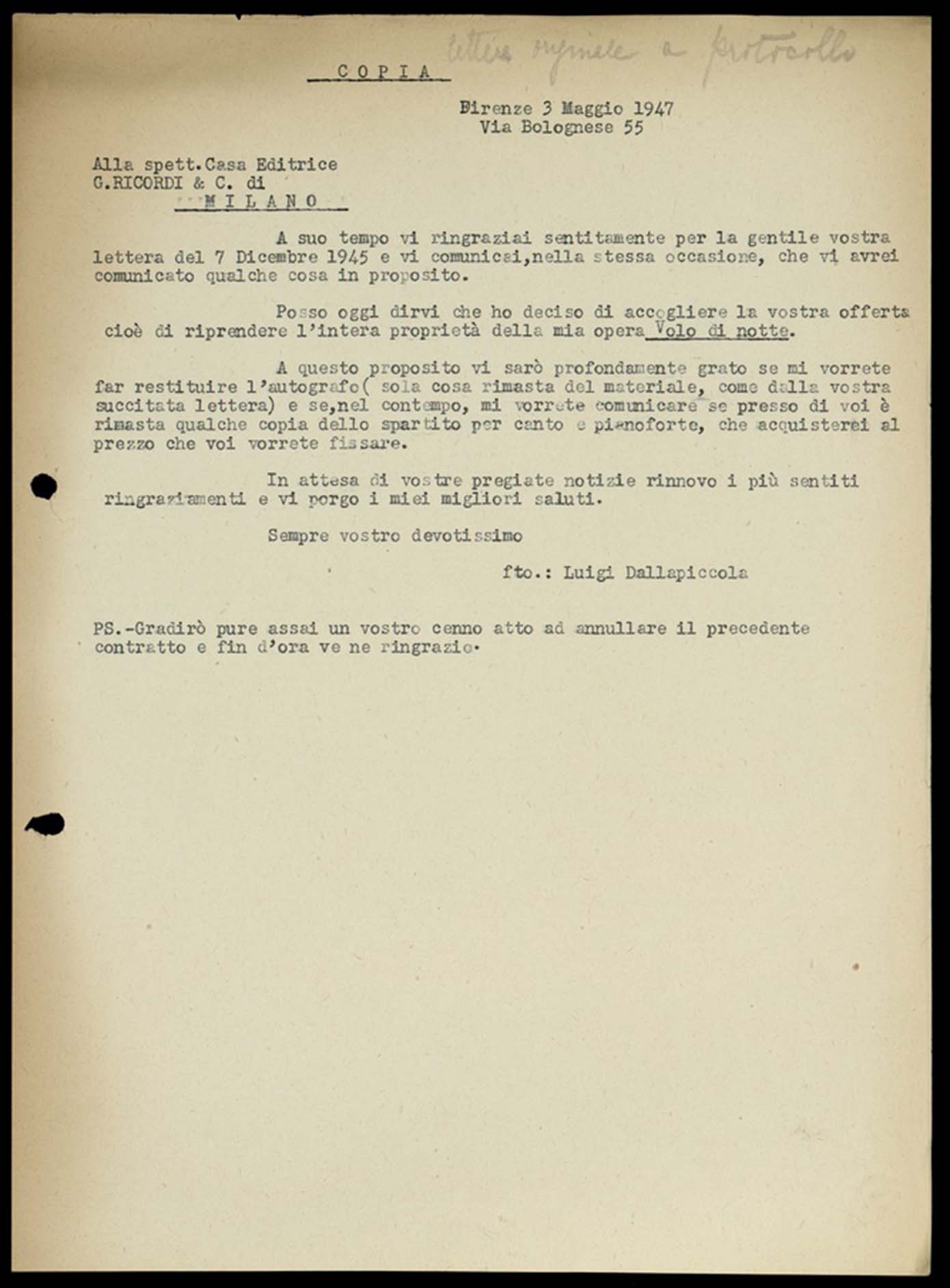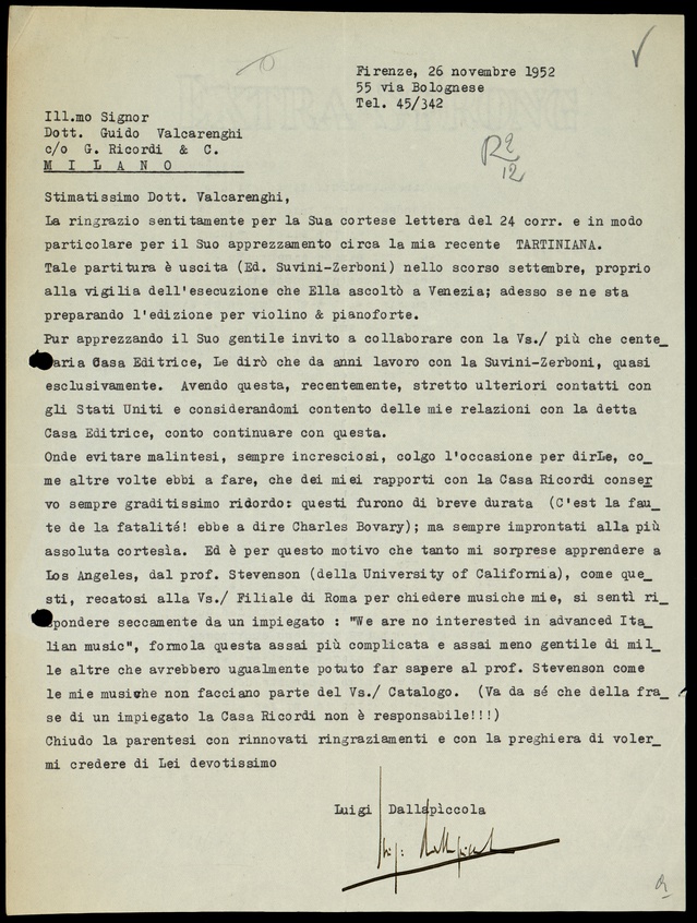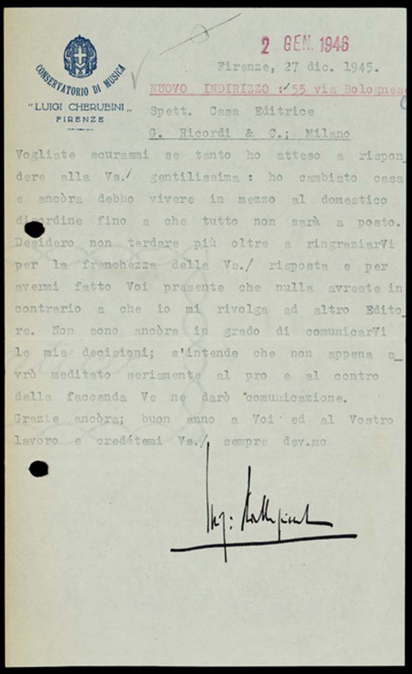 Le lettere di Casa Ricordi rappresentano un patrimonio di inestimabile valore non soltanto per la storia della musica e del teatro, ma anche delle relazioni fra arte e impresa economica. La capacità di tutelare il sottile equilibrio fra le ragioni artistiche e quelle commerciali è stato uno dei principali elementi del successo di Casa Ricordi. I suoi gestori dedicarono molto tempo ed energie alla relazione con gli artisti - fornitori ultimi del materiale capace di garantire la ricchezza e l’indipendenza della casa editrice - ma anche con i fruitori del loro lavoro: teatri, periodici musicali, musicisti e semplici appassionati. Vengono qui presentate tutte le lettere custodite dall’Archivio Storico Ricordi dall’inizio dell’attività fino al 1948, quando le dimissioni di Tito II segnano la fine della gerenza familiare. Le lettere successive sono consultabili su richiesta in archivio.
