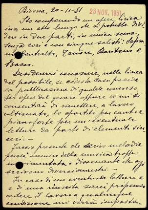 Le lettere di Casa Ricordi rappresentano un patrimonio di inestimabile valore non soltanto per la storia della musica e del teatro, ma anche delle relazioni fra arte e impresa economica. La capacità di tutelare il sottile equilibrio fra le ragioni artistiche e quelle commerciali è stato uno dei principali elementi del successo di Casa Ricordi. I suoi gestori dedicarono molto tempo ed energie alla relazione con gli artisti - fornitori ultimi del materiale capace di garantire la ricchezza e l’indipendenza della casa editrice - ma anche con i fruitori del loro lavoro: teatri, periodici musicali, musicisti e semplici appassionati. Vengono qui presentate tutte le lettere custodite dall’Archivio Storico Ricordi dall’inizio dell’attività fino al 1948, quando le dimissioni di Tito II segnano la fine della gerenza familiare. Le lettere successive sono consultabili su richiesta in archivio.