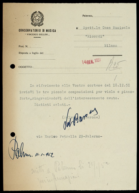 Le lettere di Casa Ricordi rappresentano un patrimonio di inestimabile valore non soltanto per la storia della musica e del teatro, ma anche delle relazioni fra arte e impresa economica. La capacità di tutelare il sottile equilibrio fra le ragioni artistiche e quelle commerciali è stato uno dei principali elementi del successo di Casa Ricordi. I suoi gestori dedicarono molto tempo ed energie alla relazione con gli artisti - fornitori ultimi del materiale capace di garantire la ricchezza e l’indipendenza della casa editrice - ma anche con i fruitori del loro lavoro: teatri, periodici musicali, musicisti e semplici appassionati. Vengono qui presentate tutte le lettere custodite dall’Archivio Storico Ricordi dall’inizio dell’attività fino al 1948, quando le dimissioni di Tito II segnano la fine della gerenza familiare. Le lettere successive sono consultabili su richiesta in archivio.