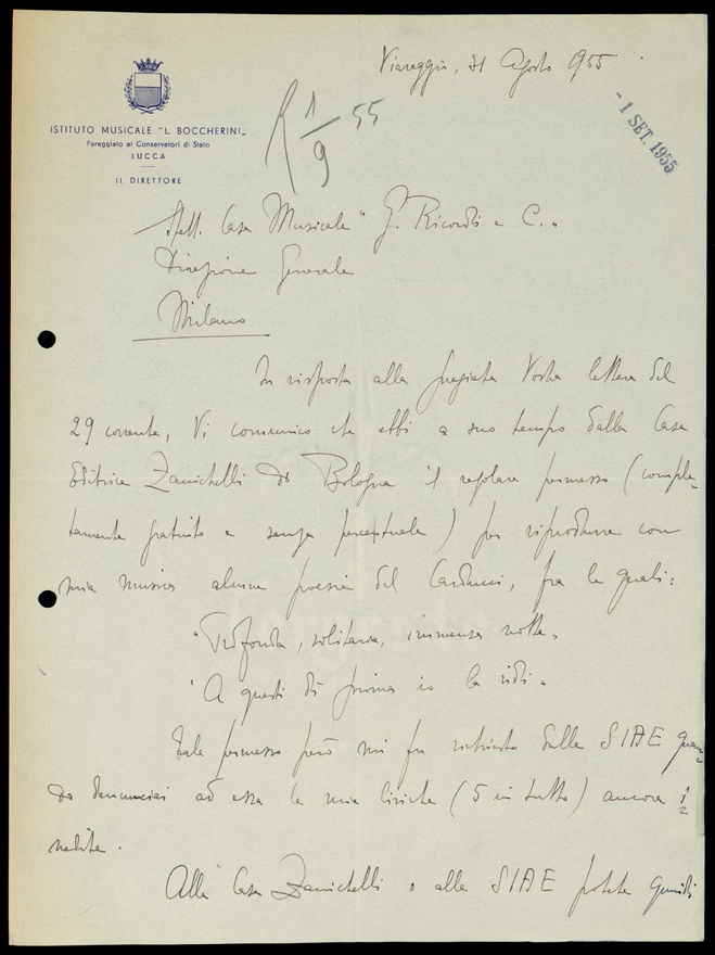 Le lettere di Casa Ricordi rappresentano un patrimonio di inestimabile valore non soltanto per la storia della musica e del teatro, ma anche delle relazioni fra arte e impresa economica. La capacità di tutelare il sottile equilibrio fra le ragioni artistiche e quelle commerciali è stato uno dei principali elementi del successo di Casa Ricordi. I suoi gestori dedicarono molto tempo ed energie alla relazione con gli artisti - fornitori ultimi del materiale capace di garantire la ricchezza e l’indipendenza della casa editrice - ma anche con i fruitori del loro lavoro: teatri, periodici musicali, musicisti e semplici appassionati. Vengono qui presentate tutte le lettere custodite dall’Archivio Storico Ricordi dall’inizio dell’attività fino al 1948, quando le dimissioni di Tito II segnano la fine della gerenza familiare. Le lettere successive sono consultabili su richiesta in archivio.