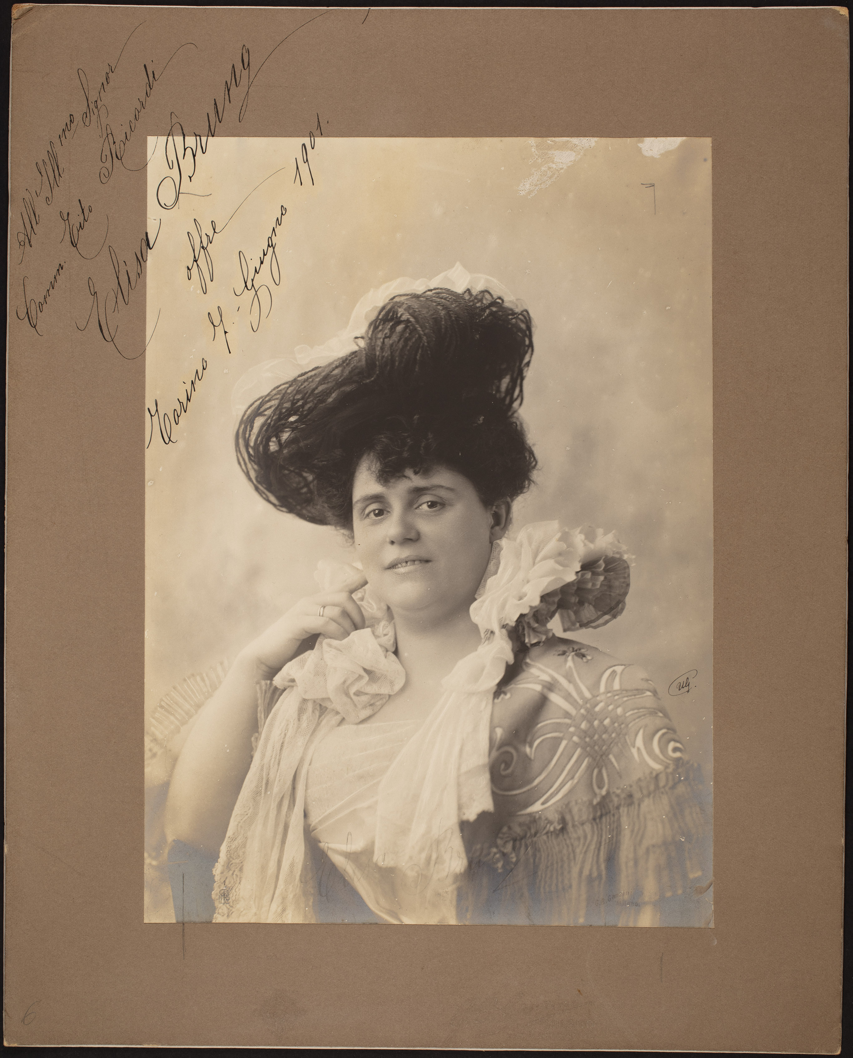 Firma autografa/Dedica: All'Ill.mo Signor | Comm. Tito Ricordi | Elisa Brung | offre | Torino 7 giugno 1901