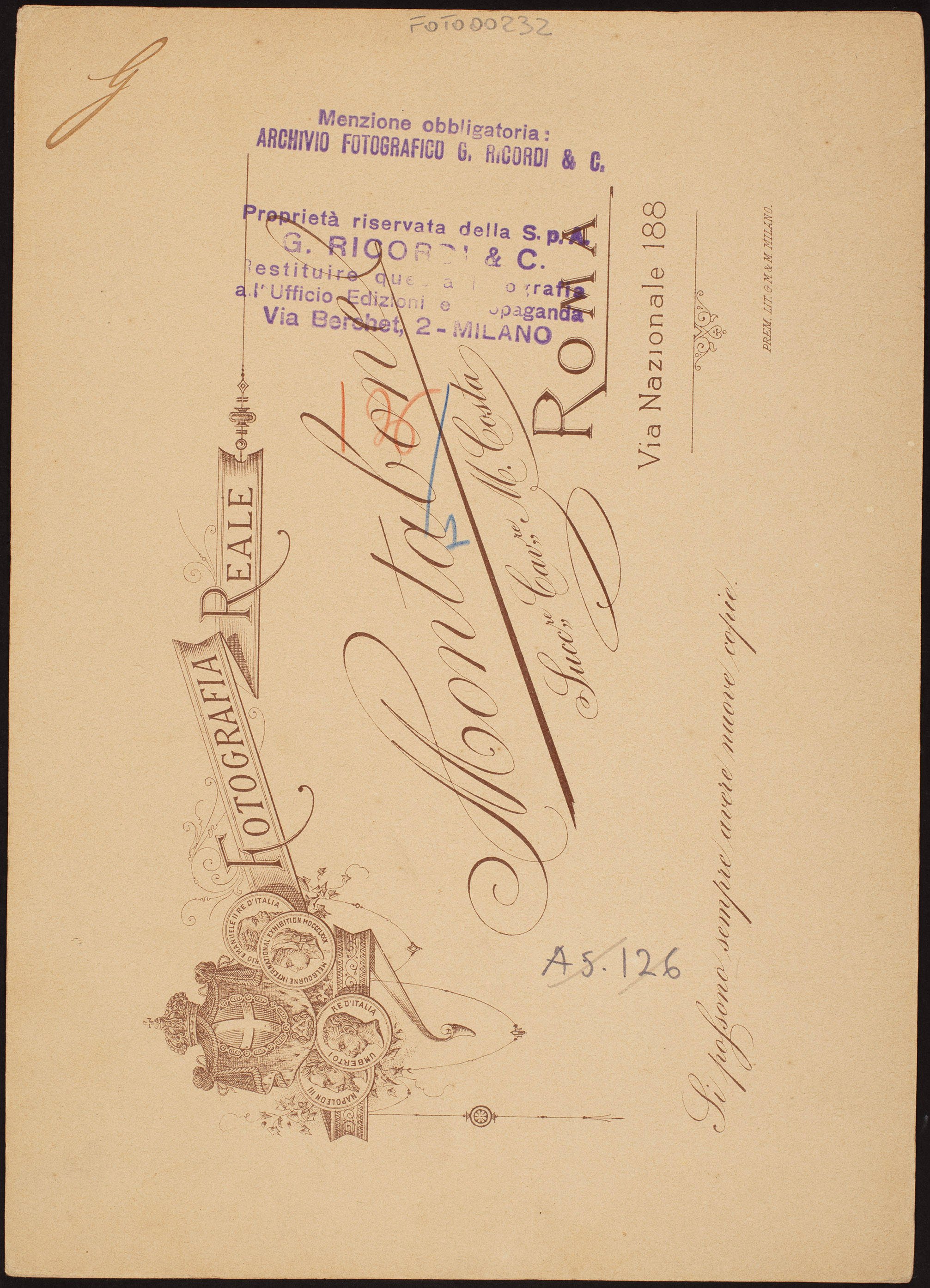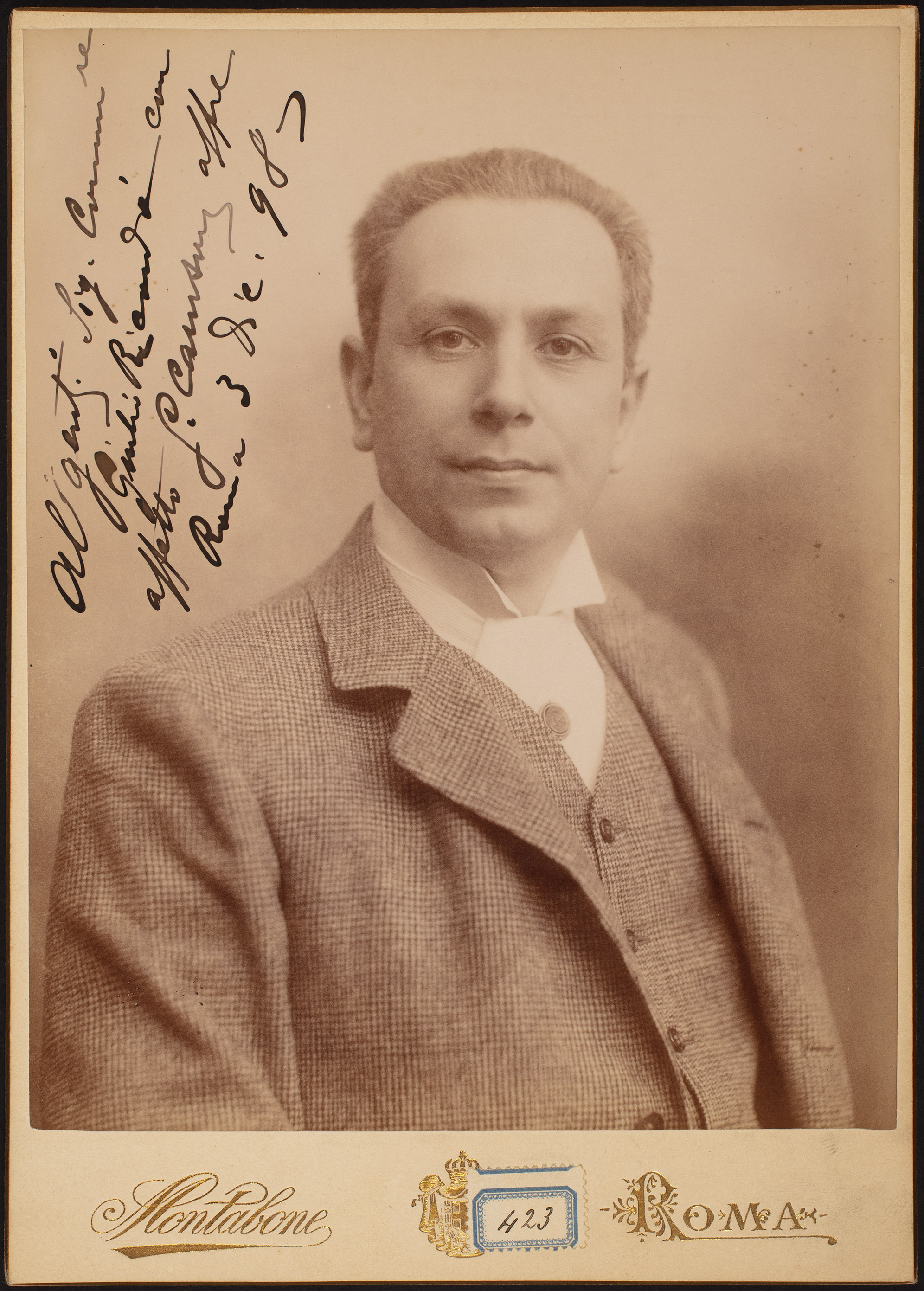 Firma autografa/Dedica: Al gent. Sig. Comm.re | Giulio Ricordi con | affetto G. Caruson offre | Roma 3 dic. 98