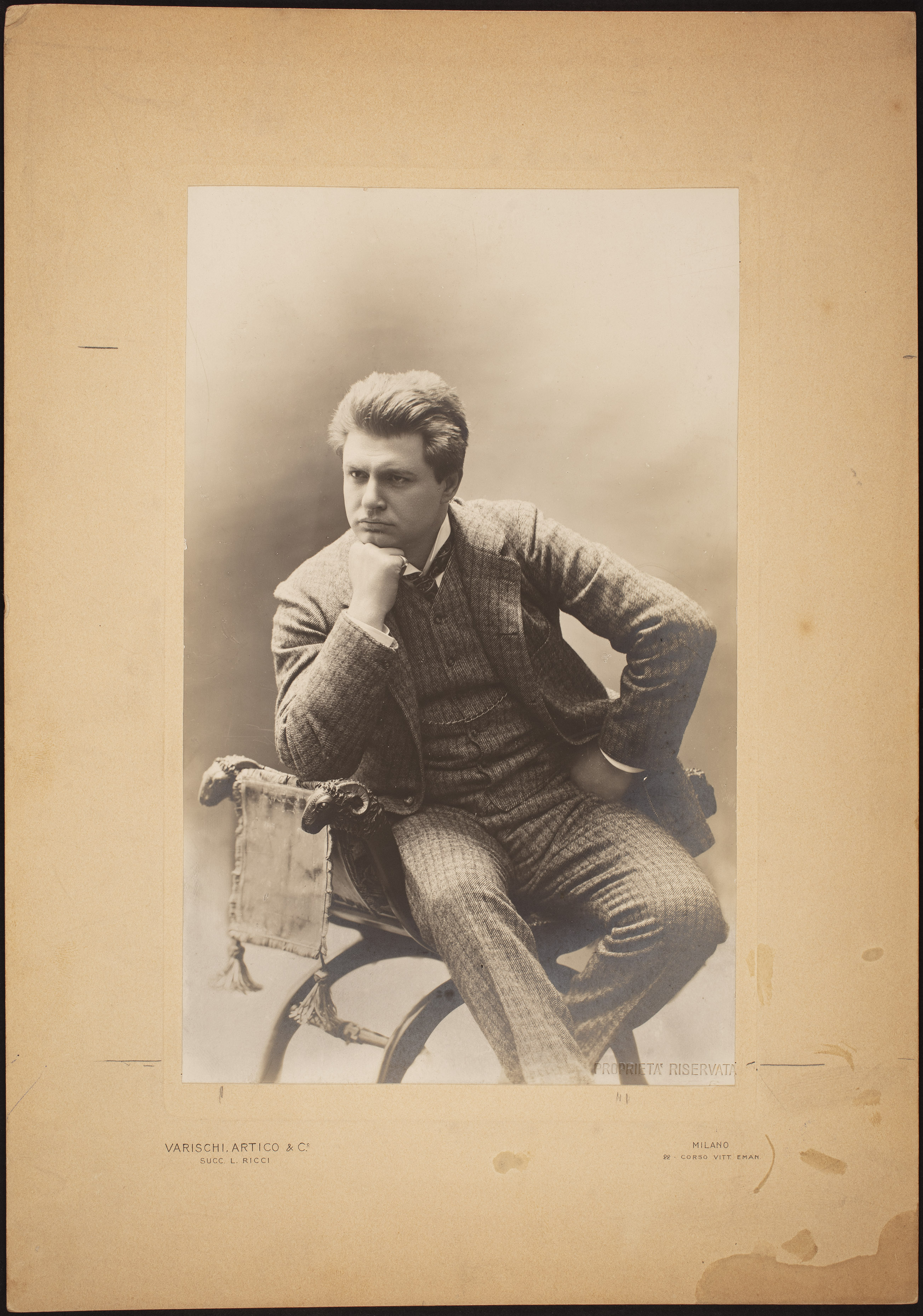 Il Fondo Fotografico dell’Archivio inizia a formarsi dalla seconda metà dell’800 fino a tutto il ‘900 e conta migliaia di documenti, grazie soprattutto all’interesse dimostrato da Giulio Ricordi per questa nuova arte. La fotografia diviene un mezzo di comunicazione che si rivela sempre più indispensabile nella macchina produttiva dell’editore, a partire dalle riviste di Casa Ricordi come Musica e Musicisti e Ars et Labor. In questa sezione sono stati censiti i quasi 900 studi fotografici che hanno collaborato con Ricordi, molti nomi della fotografia italiana ed estera.