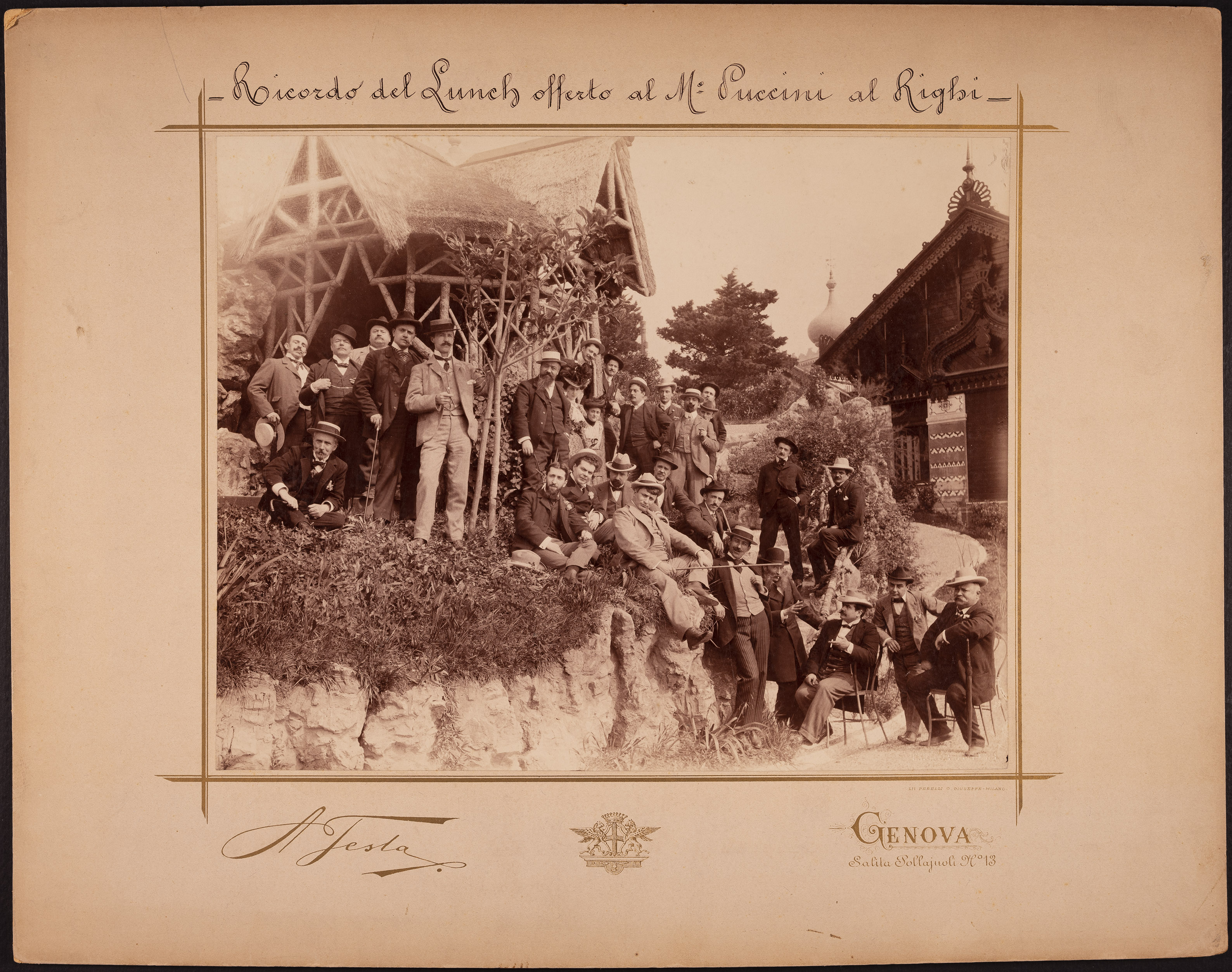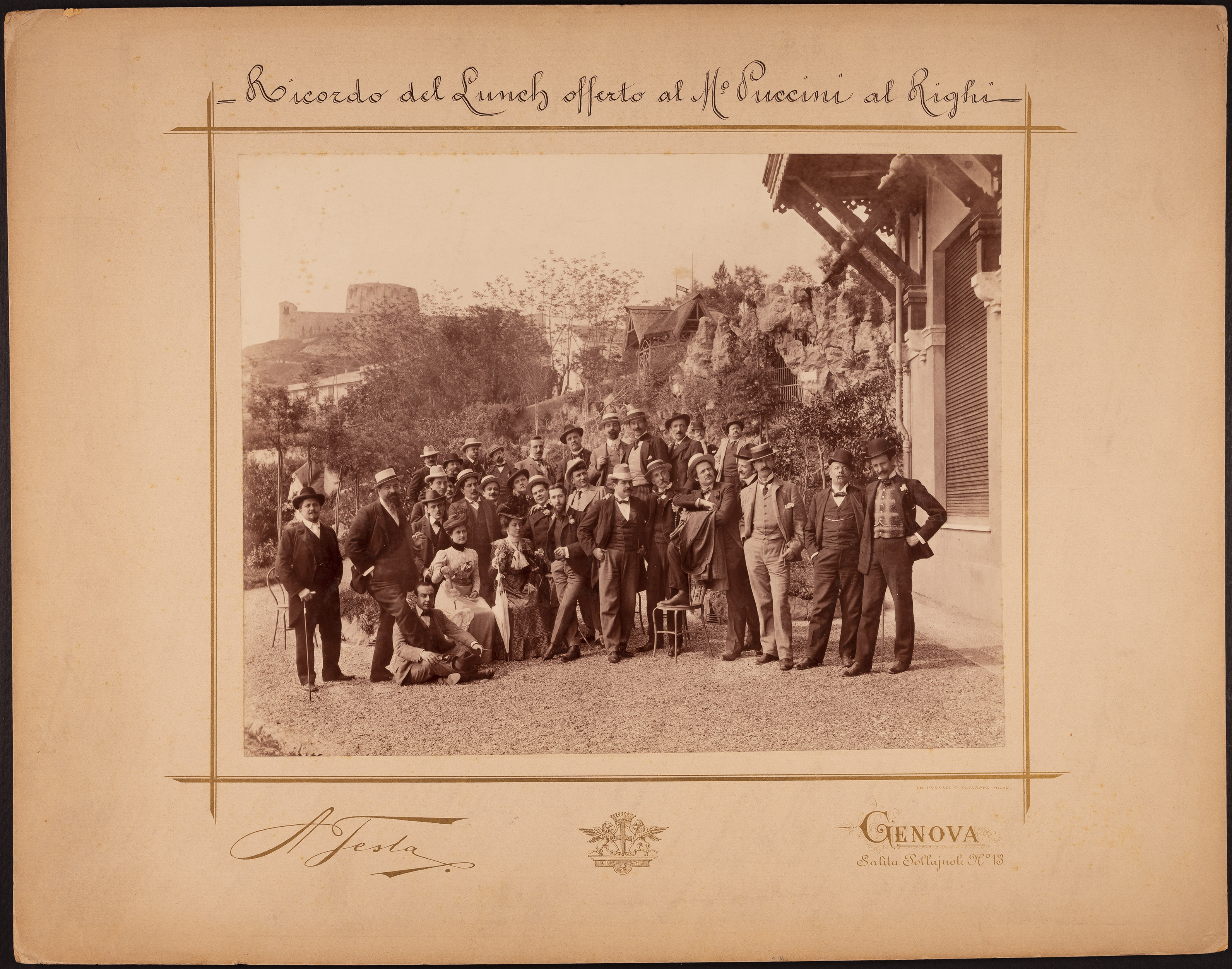 | Giacomo Puccini con gli invitati al lunch nel giardino del Ristorante Righi | Testa, Achille | FOTO01994 | 1900 | |