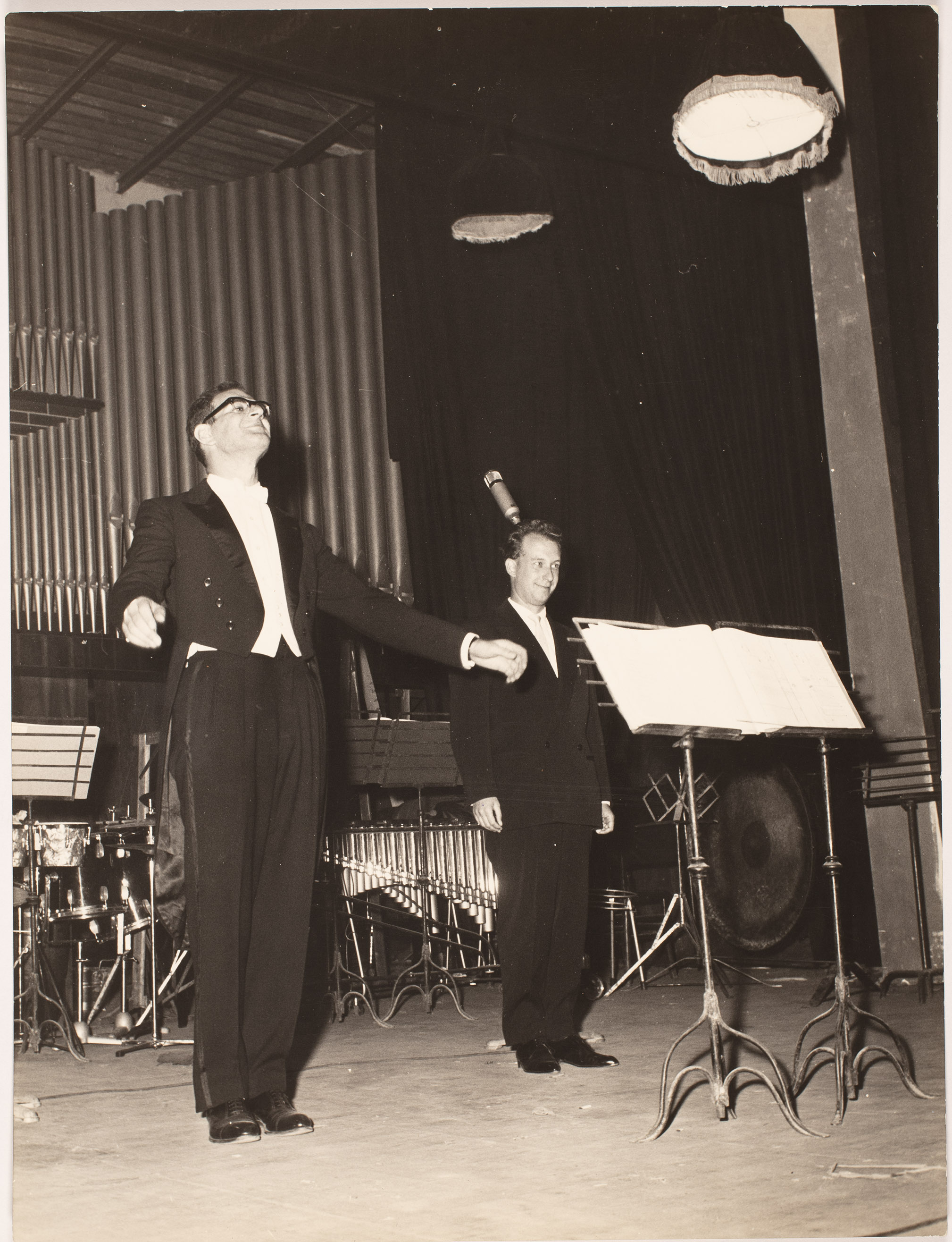 | Mauricio Kagel e Dieter Schnebel al temine dell'esecuzione di Glossolalie | Labruzzo | FOTO02455 | 1963 | |