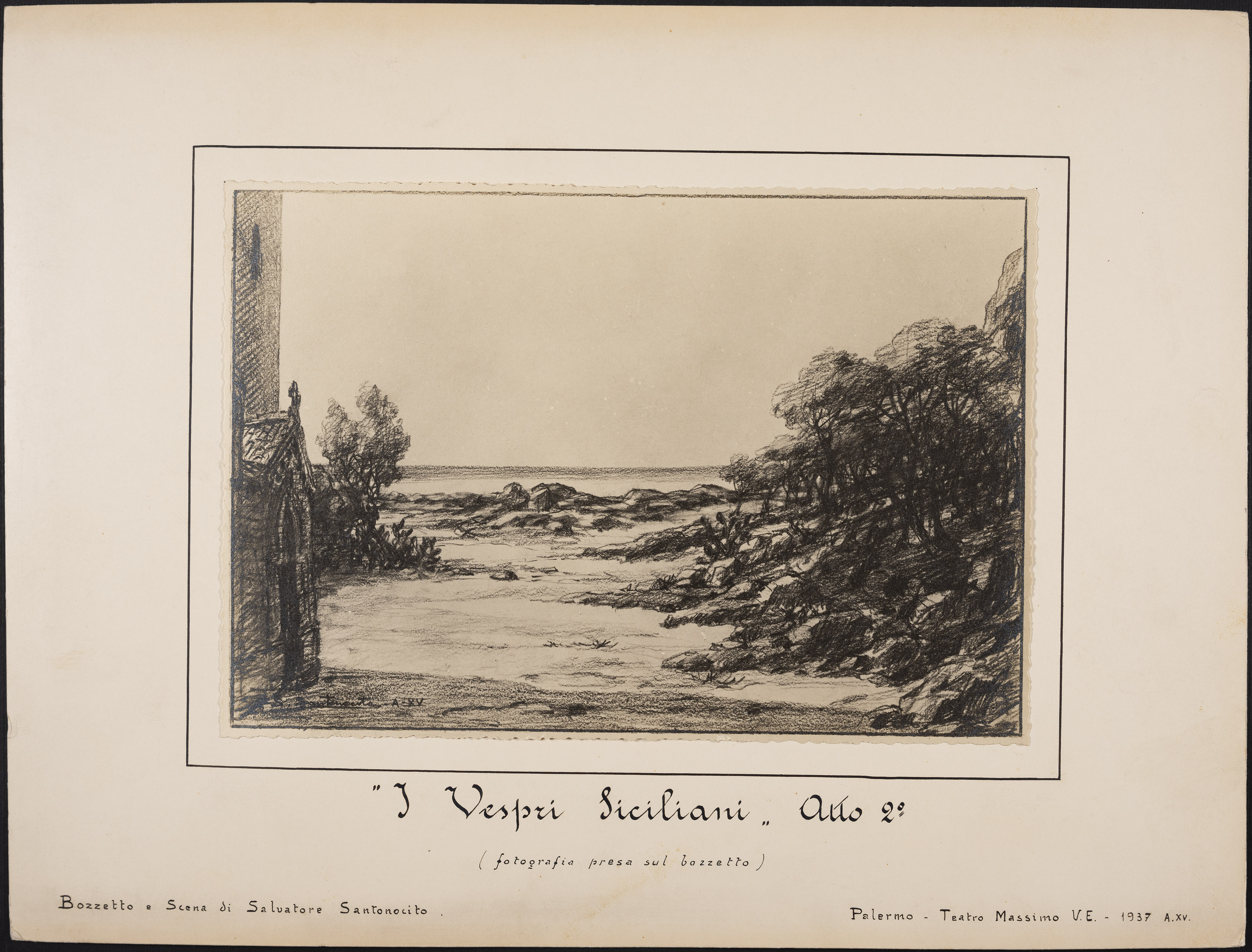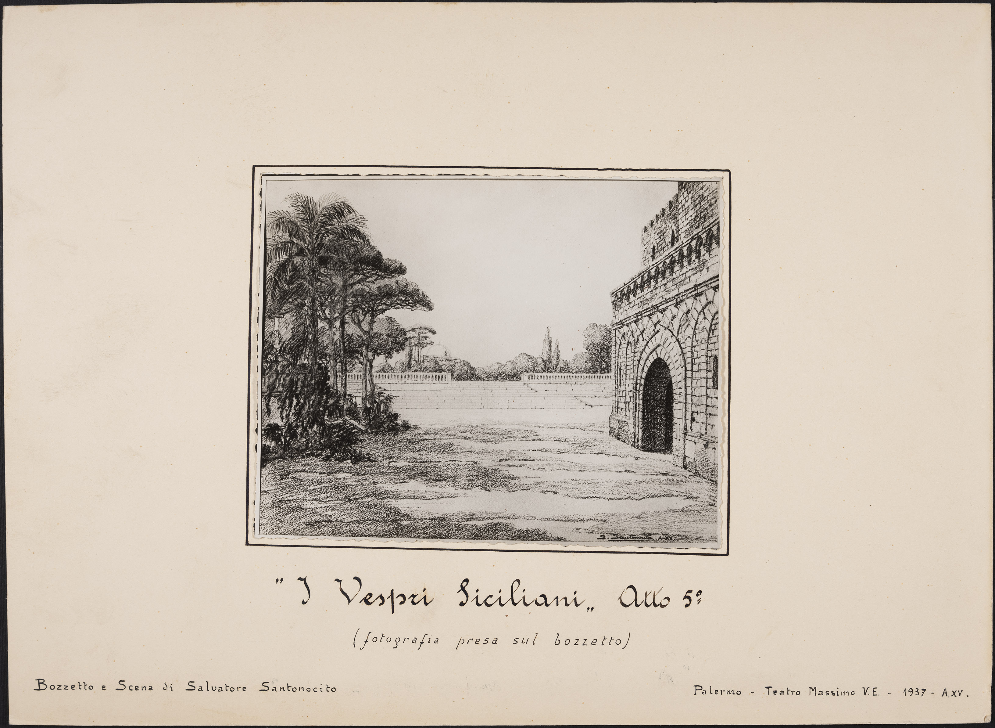 | I Vespri Siciliani, Atto 2°, bozzetto di Salvatore Santonocito, Palermo, Teatro Massimo, 1937 | Anonimo | FOTO01607 | 1937 | |