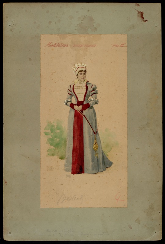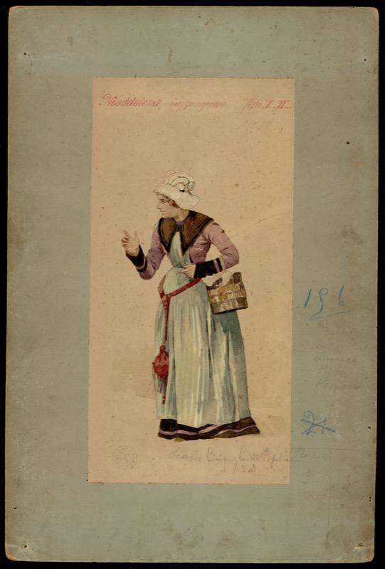 La raccolta iconografica dell’Archivio riguarda il XIX e il XX secolo. Comprende oltre 600 bozzetti originali, per lo più della prima delle varie opere, a partire dai bozzetti di Giuseppe Bertoja per Attila di Verdi, fino a quelli realizzati negli anni Trenta da Nicola Benois per La Fiamma di Respighi. Per alcune opere esistono diverse varianti delle piante sceniche, ad esempio per la Tosca o La bohème di Puccini, a seconda della grandezza del teatro previsto per la rappresentazione. Il fondo iconografico comprende anche un’importante raccolta di figurini, composta da migliaia di disegni originali di famosi costumisti.