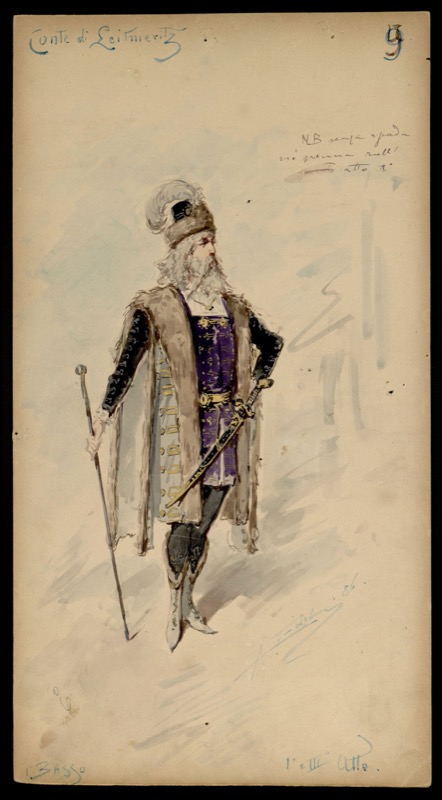 La raccolta iconografica dell’Archivio riguarda il XIX e il XX secolo. Comprende oltre 600 bozzetti originali, per lo più della prima delle varie opere, a partire dai bozzetti di Giuseppe Bertoja per Attila di Verdi, fino a quelli realizzati negli anni Trenta da Nicola Benois per La Fiamma di Respighi. Per alcune opere esistono diverse varianti delle piante sceniche, ad esempio per la Tosca o La bohème di Puccini, a seconda della grandezza del teatro previsto per la rappresentazione. Il fondo iconografico comprende anche un’importante raccolta di figurini, composta da migliaia di disegni originali di famosi costumisti.