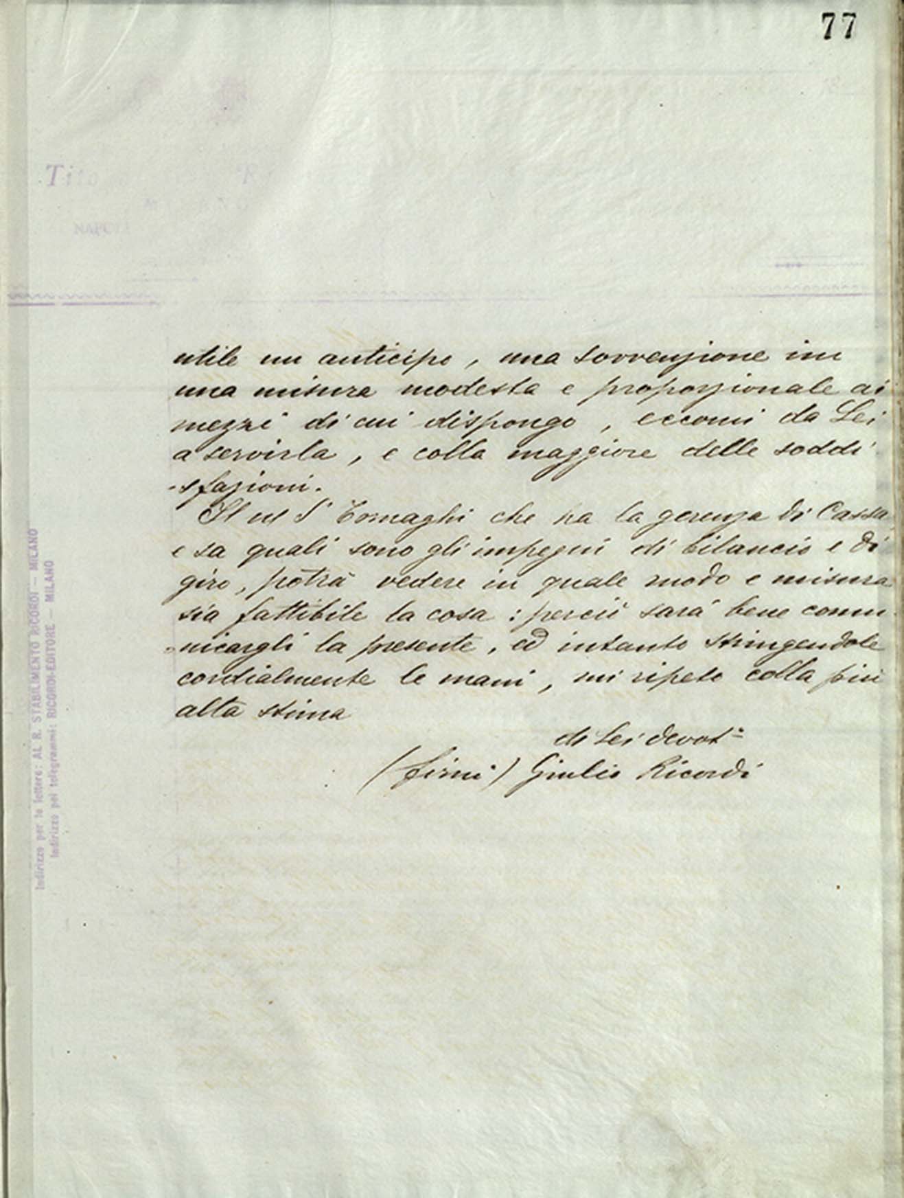 (signed) Giulio Ricordi
