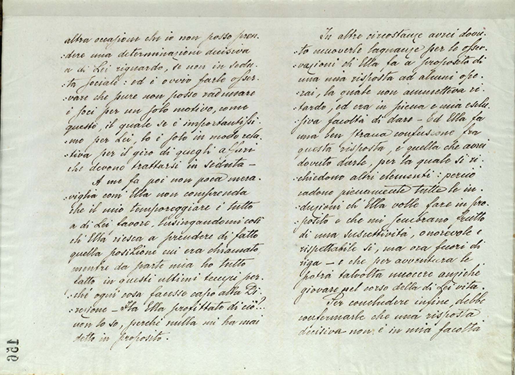 A me fa poi non poca meraviglia com’Ella non comprenda che il mio temporeggiare è tutto a di Lei favore, lusingandomi così ch’Ella riesca a prendere di fatto quella posizione cui era chiamato mentre da parte mia ho tutto fatto in questi ultimi tempi perché ogni cosa facesse capo alla Direzione. Ha Ella profittato di ciò?.. non lo so, perché nulla mi ha mai detto in proposito.