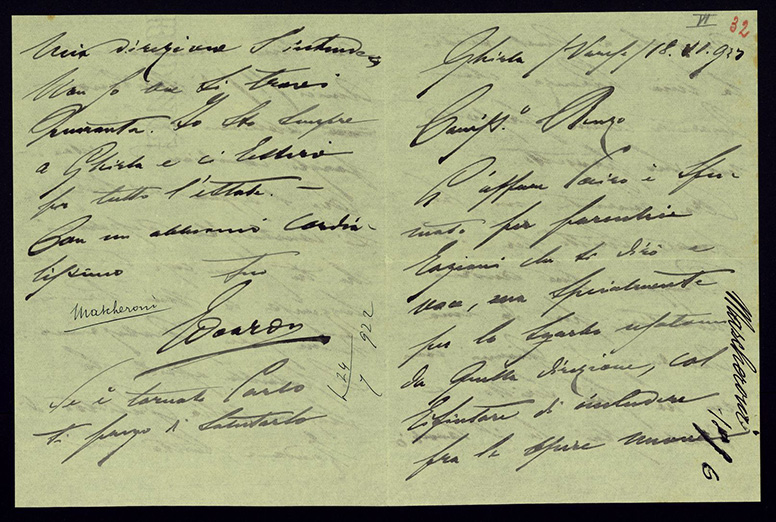 Ove l’affare del Petruzzelli si concludesse, desidererei che tu (come cosa tua) gli suggerissi la mia Perugina. Te ne sarei gratissimo. Si potrebbe aprire la stagione colla Giulietta di Zandonai, sotto la mia direzione s’intende. Non so ove si trovi Quaranta. Io sto sempre a Ghirla e ci resterò per tutta l’estate.