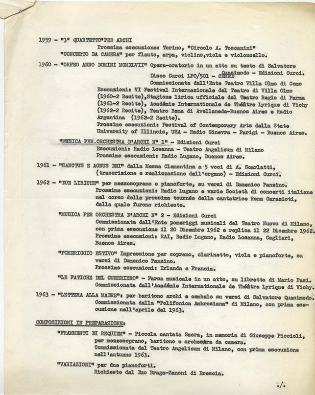 1963 - “LETTERA ALLA MADRE”: per baritono archi e cembalo su versi di Salvatore Quasimodo.