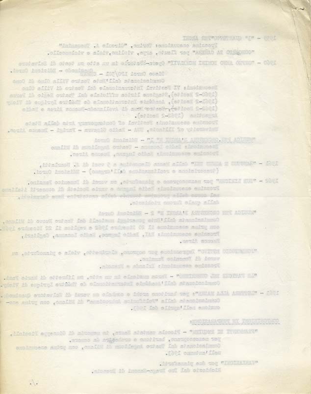 Prossime esecuzioni: Festival of Contemporary Arts della State University of Illinois, USA - Radio Ginevra - Parigi - Buenos Aires.
