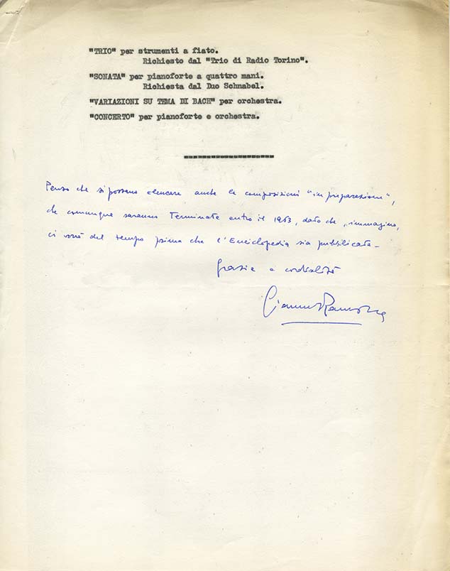 Penso che si possano elencare anche le composizioni “in preparazione”, che comunque saranno terminate entro il 1963, dato che, immagino, ci vorrà del tempo prima che l’Enciclopedia sia pubblicata.