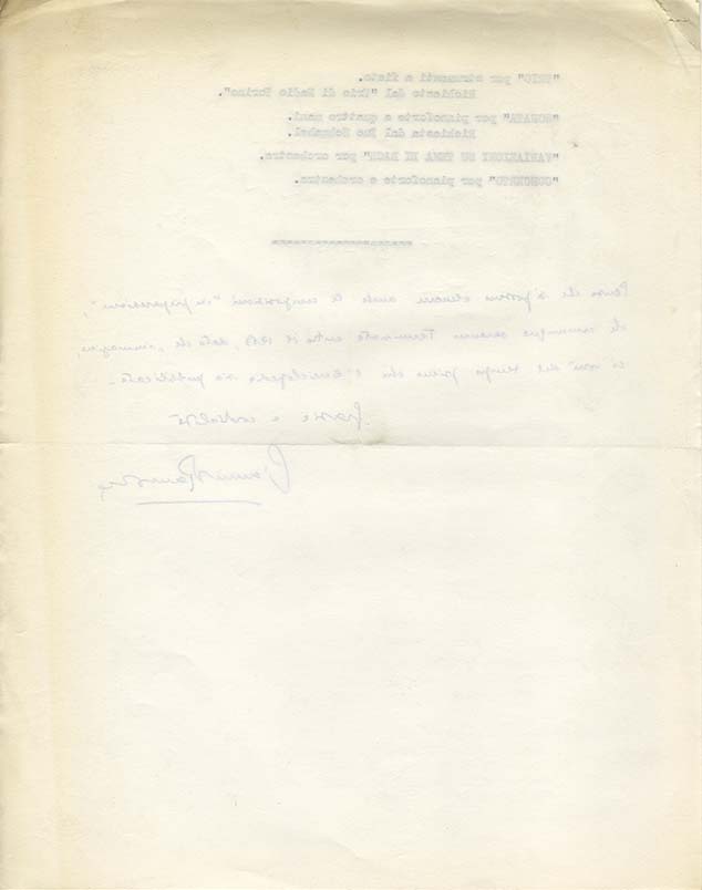 Prossime esecuzioni: Radio Lugano e varie Società di concerti italiane nel corso della prossima tournée della cantatrice Rena Garazioti, dalla quale furono richieste.