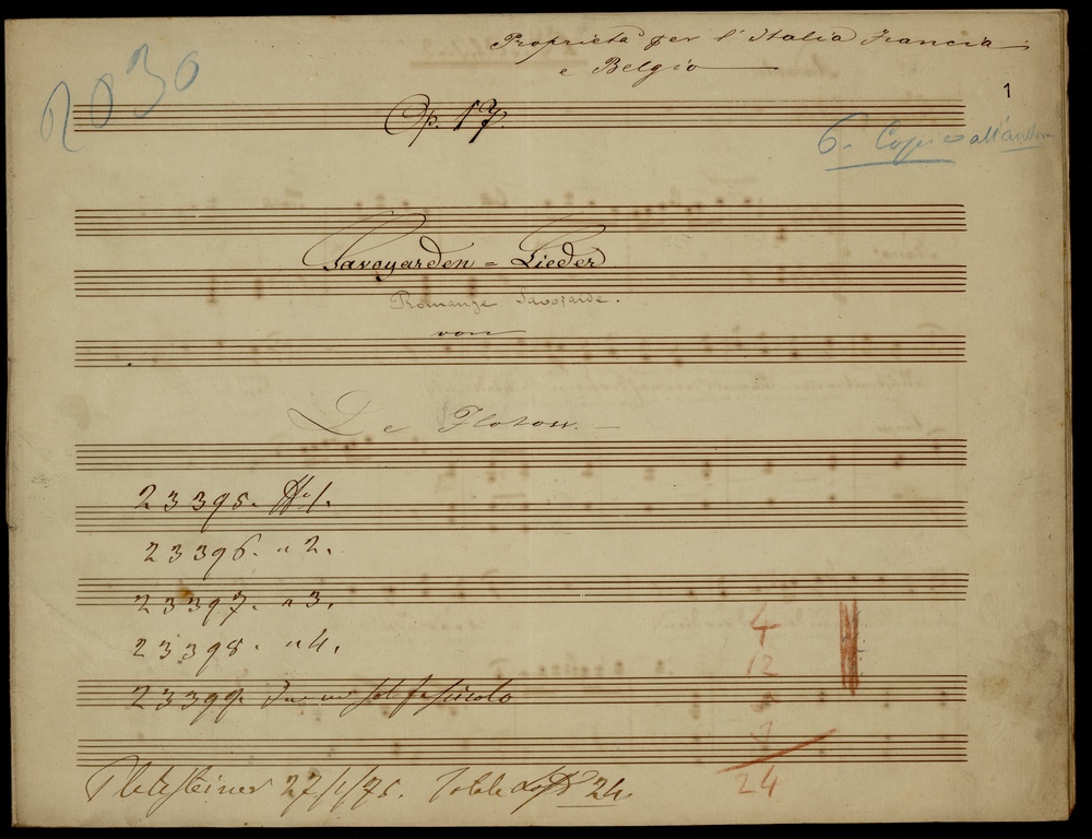 Quasi 8.000 partiture dalla metà del ’700 alla fine del XX secolo. Si tratta non soltanto di opere, ma anche di musica da camera e sinfonica. Le più antiche sono Il Ciro riconosciuto di Niccolò Jommelli (del 1744) e i 24 Capricci di Niccolò Paganini, le più recenti di Luigi Nono (ad esempio l’importante tragedia dell’ascolto Prometeo del 1984) e di Franco Donatoni (tra cui la trascrizione per orchestra de L’arte della fuga di Bach, del 1992). Inoltre un gran numero di romanze, tuttora eseguite in Italia, di Francesco Paolo Tosti e altri autori, trascrizioni, adattamenti e riduzioni, nonché una serie di testi di didattica musicale.
