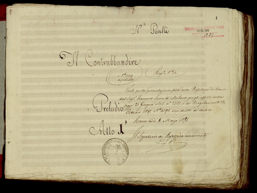 Quasi 8.000 partiture dalla metà del ’700 alla fine del XX secolo. Si tratta non soltanto di opere, ma anche di musica da camera e sinfonica. Le più antiche sono Il Ciro riconosciuto di Niccolò Jommelli (del 1744) e i 24 Capricci di Niccolò Paganini, le più recenti di Luigi Nono (ad esempio l’importante tragedia dell’ascolto Prometeo del 1984) e di Franco Donatoni (tra cui la trascrizione per orchestra de L’arte della fuga di Bach, del 1992). Inoltre un gran numero di romanze, tuttora eseguite in Italia, di Francesco Paolo Tosti e altri autori, trascrizioni, adattamenti e riduzioni, nonché una serie di testi di didattica musicale.