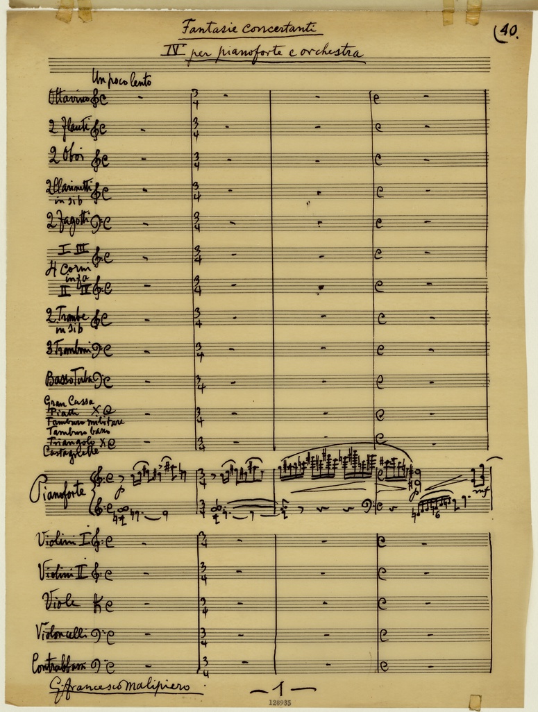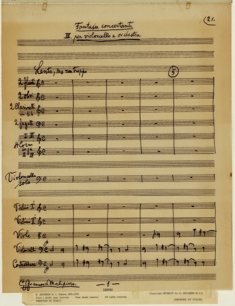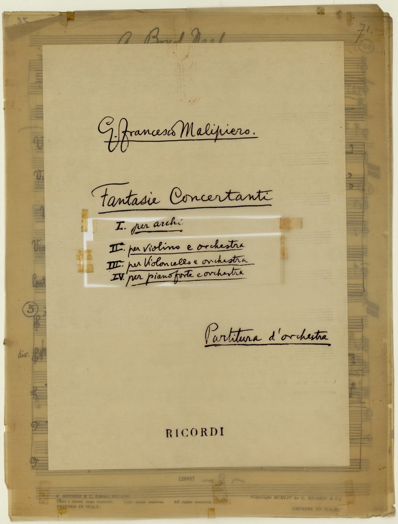 Quasi 8.000 partiture dalla metà del ’700 alla fine del XX secolo. Si tratta non soltanto di opere, ma anche di musica da camera e sinfonica. Le più antiche sono Il Ciro riconosciuto di Niccolò Jommelli (del 1744) e i 24 Capricci di Niccolò Paganini, le più recenti di Luigi Nono (ad esempio l’importante tragedia dell’ascolto Prometeo del 1984) e di Franco Donatoni (tra cui la trascrizione per orchestra de L’arte della fuga di Bach, del 1992). Inoltre un gran numero di romanze, tuttora eseguite in Italia, di Francesco Paolo Tosti e altri autori, trascrizioni, adattamenti e riduzioni, nonché una serie di testi di didattica musicale.