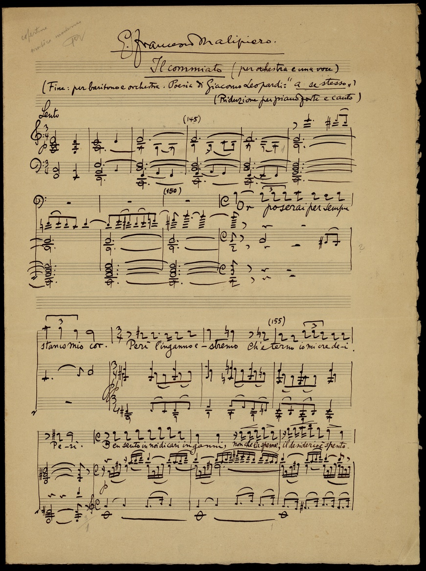 Commiato, Il, per orch.e una voce (Fine:per bar. e orch., testo di G.Leopardi)