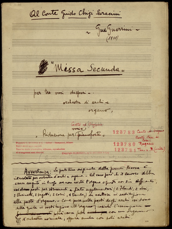 Missa secunda, Per 3 voci dispari, orch. d'archi e org. Rid. Per