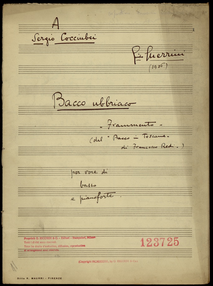 Quasi 8.000 partiture dalla metà del ’700 alla fine del XX secolo. Si tratta non soltanto di opere, ma anche di musica da camera e sinfonica. Le più antiche sono Il Ciro riconosciuto di Niccolò Jommelli (del 1744) e i 24 Capricci di Niccolò Paganini, le più recenti di Luigi Nono (ad esempio l’importante tragedia dell’ascolto Prometeo del 1984) e di Franco Donatoni (tra cui la trascrizione per orchestra de L’arte della fuga di Bach, del 1992). Inoltre un gran numero di romanze, tuttora eseguite in Italia, di Francesco Paolo Tosti e altri autori, trascrizioni, adattamenti e riduzioni, nonché una serie di testi di didattica musicale.