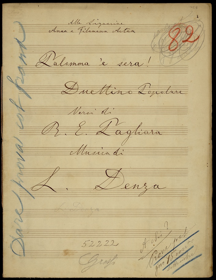 Quasi 8.000 partiture dalla metà del ’700 alla fine del XX secolo. Si tratta non soltanto di opere, ma anche di musica da camera e sinfonica. Le più antiche sono Il Ciro riconosciuto di Niccolò Jommelli (del 1744) e i 24 Capricci di Niccolò Paganini, le più recenti di Luigi Nono (ad esempio l’importante tragedia dell’ascolto Prometeo del 1984) e di Franco Donatoni (tra cui la trascrizione per orchestra de L’arte della fuga di Bach, del 1992). Inoltre un gran numero di romanze, tuttora eseguite in Italia, di Francesco Paolo Tosti e altri autori, trascrizioni, adattamenti e riduzioni, nonché una serie di testi di didattica musicale.